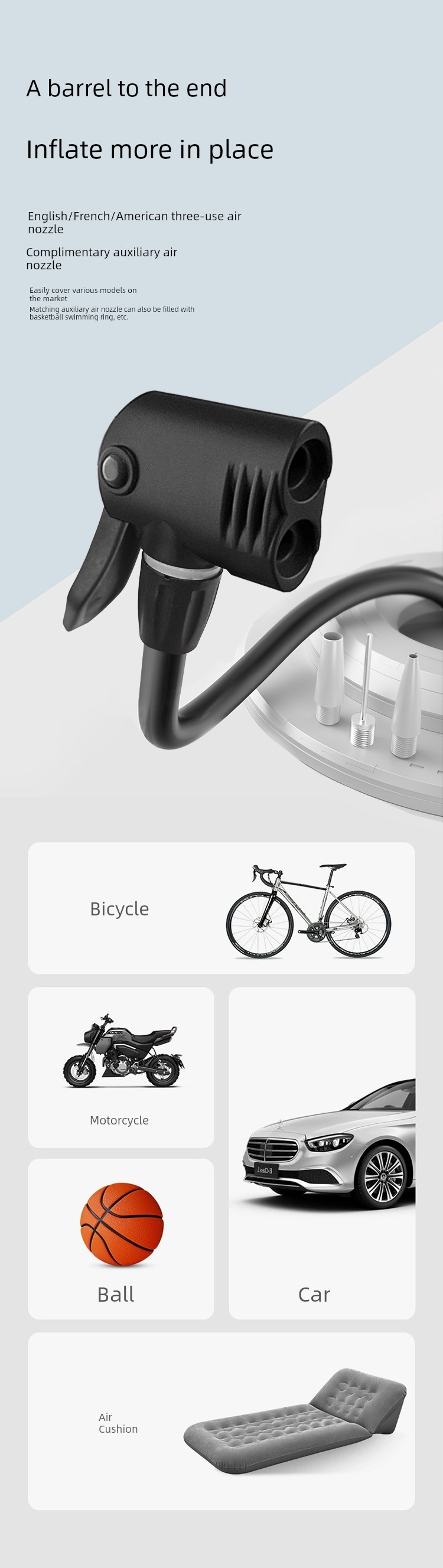 🚗 Inflate with Ease! ✨ What it is - Our High Pressure Portable Electric Tire Pump is the ultimate companion for all your inflating needs. Designed for bicycles, cars, and sports equipment, this tool features a durable stainless steel gas pipe that ensures a reliable and powerful performance, enabling you to inflate tires quickly and efficiently. 🛠️ Why you need it - This electric air pump is essential for every household and on-the-go adventures. Here’s why: - Saves time with rapid inflation technology. - Versatile for various uses: cars, bicycles, basketballs, and more. - Compact and lightweight design for easy portability. - Built-in pressure gauge prevents over-inflation. - Durable construction ensures long-lasting use. ❤ Why you’ll love it - Users rave about its user-friendly features and exceptional performance: - One-button operation makes it super easy to use. - Quiet yet powerful motor for efficient inflation. - Rechargeable battery allows for use wherever you are. - Elegant design with a stainless steel finish for a premium look. 🔧 How to use it - Simply plug it into your car's power outlet or charge the battery, attach the nozzle to the tire or ball, set your desired pressure, and press the start button. Watch as it quickly inflates to the perfect level! ✅ Satisfaction Guaranteed - Order yours today and experience the convenience of efficient inflating! Don’t miss out on this must-have tool; supplies are limited!